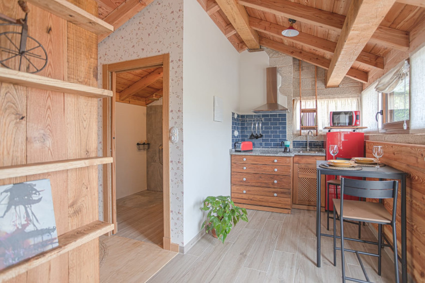 Casiña da Eira es una minicasa independiente, con 1 habitación y 1 baño.