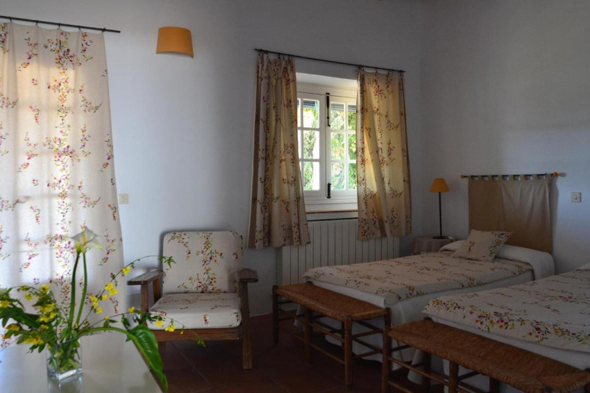 Sus habitaciones, aunque cuentan con todo tipo de comodidades, conservan el gusto por lo sencillo propio de los cortijos de la sierra; en sus paredes blancas las ventanas cuelgan como murales vivos que enmarcan la belleza de los campos aledaños.
